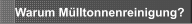 4. Falls Ihre Tonne aus irgendeinem Grunde nicht gereinigt werden soll, dann bestellen Sie die Reinigung bitte mindestens einen Werktag vorher telefonisch ab. Nicht abbestellte Reinigungen müssen wir berechnen.